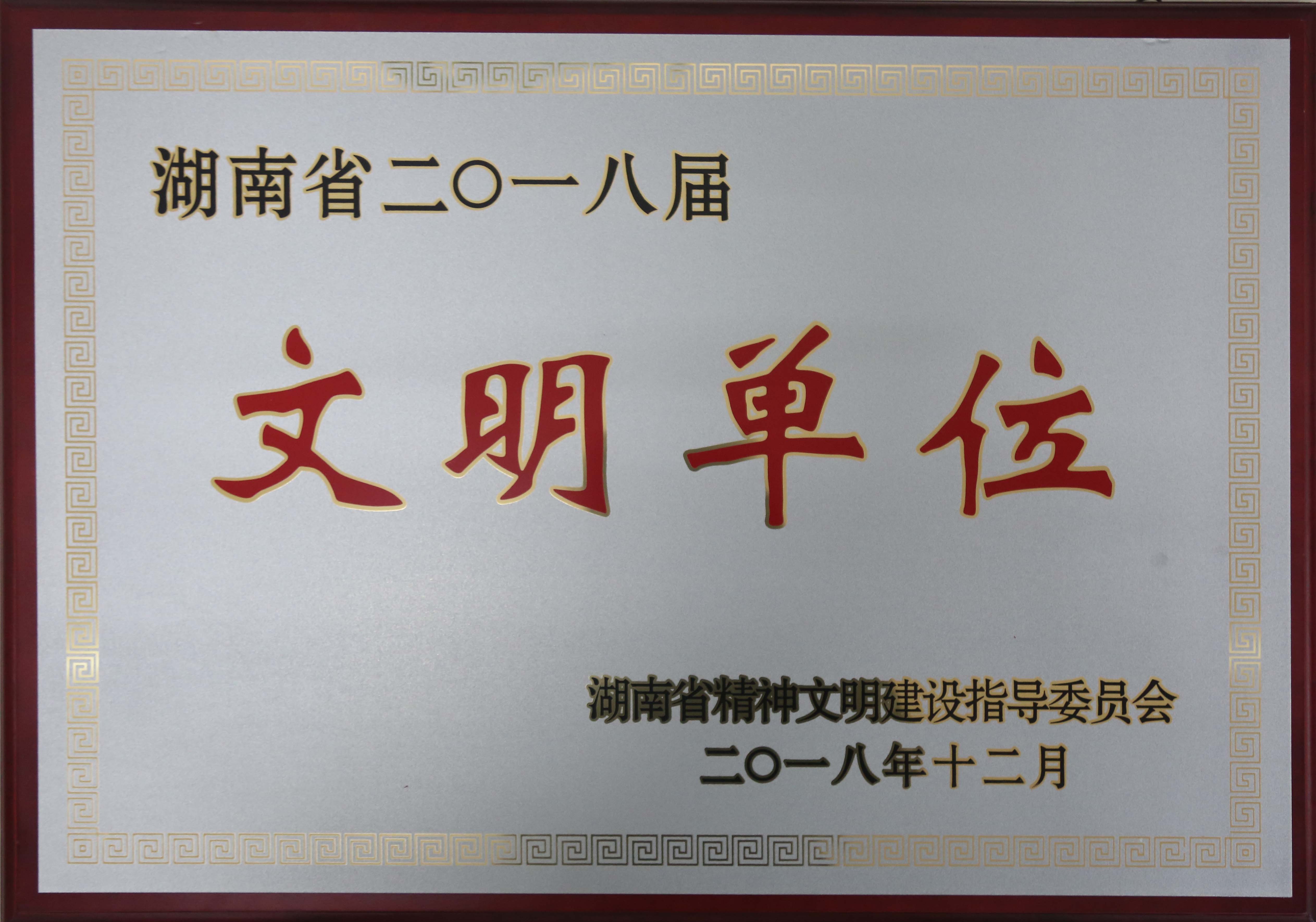 • 2018年12月被湖南省精神文明建設(shè)指導(dǎo)委員會(huì)評(píng)為“湖南省二〇一八屆文明單位”
