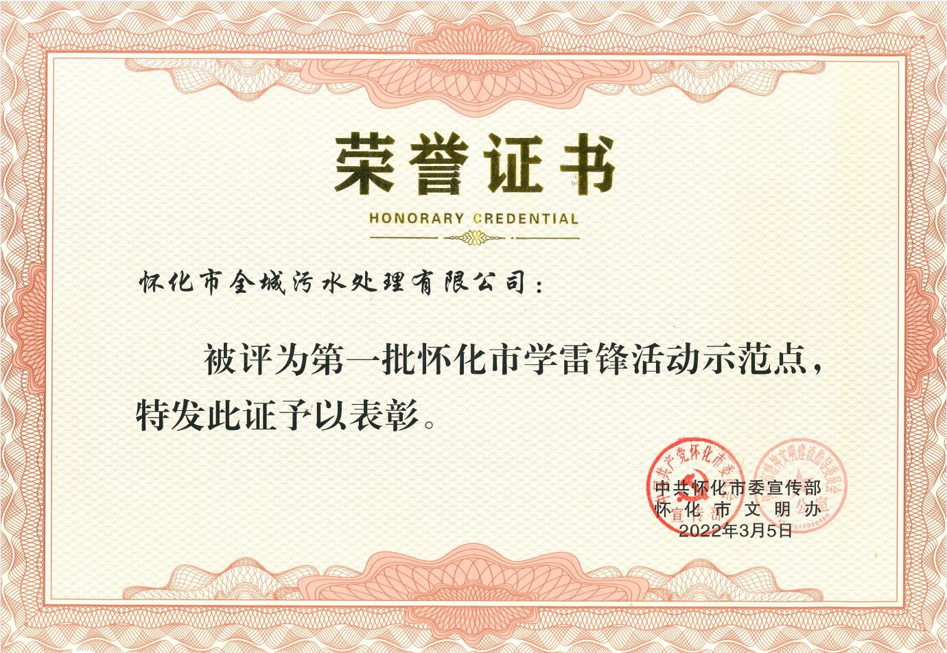 • 2022年3月被中共懷化市委宣傳部評(píng)為懷化市第一批“學(xué)雷鋒活動(dòng)示范點(diǎn)”榮譽(yù)稱號(hào)